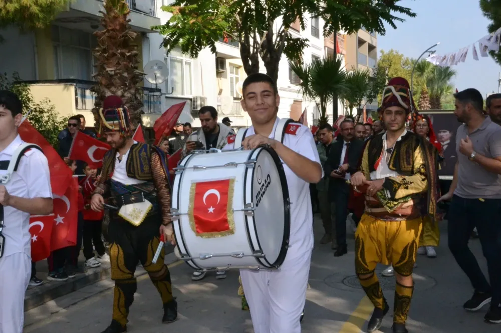 Trenden inen ve üzerlerinde Atatürk portresi taşıyan öğrenciler, Manisa Valisi Vahdettin Özkan’a Türk bayrağını takdim ederek törende duygusal bir an yaşanmasına vesile oldu. Ardından halk oyunları ekipleri sahne alarak geleneksel gösteriler sundu; Manisa Lisesi bando takımı eşliğinde protokol üyeleri ve öğrenciler Cumhuriyet Meydanı’na doğru kortej yürüyüşü gerçekleştirdi. Yürüyüşe Gazi İlkokulu ile İsmet İnönü Mesleki ve Teknik Anadolu Lisesi öğrencileri de ellerindeki Türk bayraklarıyla destek verdi; meydan boyunca oluşan birlik ve disiplin, etkinliğin en güçlü görsel unsurlarından biri oldu.