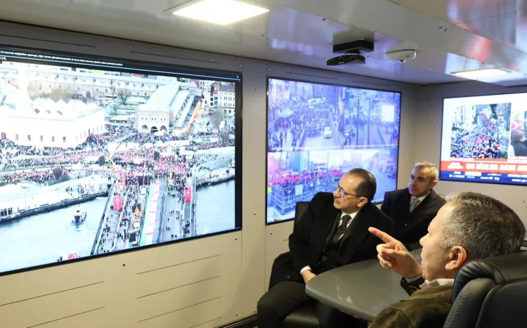İSTANBUL (İGFA) - İçişleri Bakanı Ali Yerlikaya, Galata Köprüsü’nde kurulan Mobil Güvenlik Merkezi’nden yaptığı paylaşımla Filistin’e destek yürüyüşüne ve yürüyüşte görev alan güvenlik güçlerine dikkat çekti.