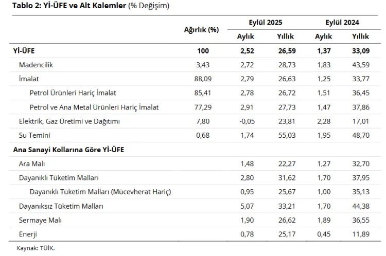 Üretici fiyatları artış eğilimini sürdürerek, yıllık enflasyon 1,43 puan artarak yüzde 26,59’a yükseldi. TCMB, aylık enflasyonun ana eğiliminin bir önceki aya kıyasla güçlendiğini belirtti.