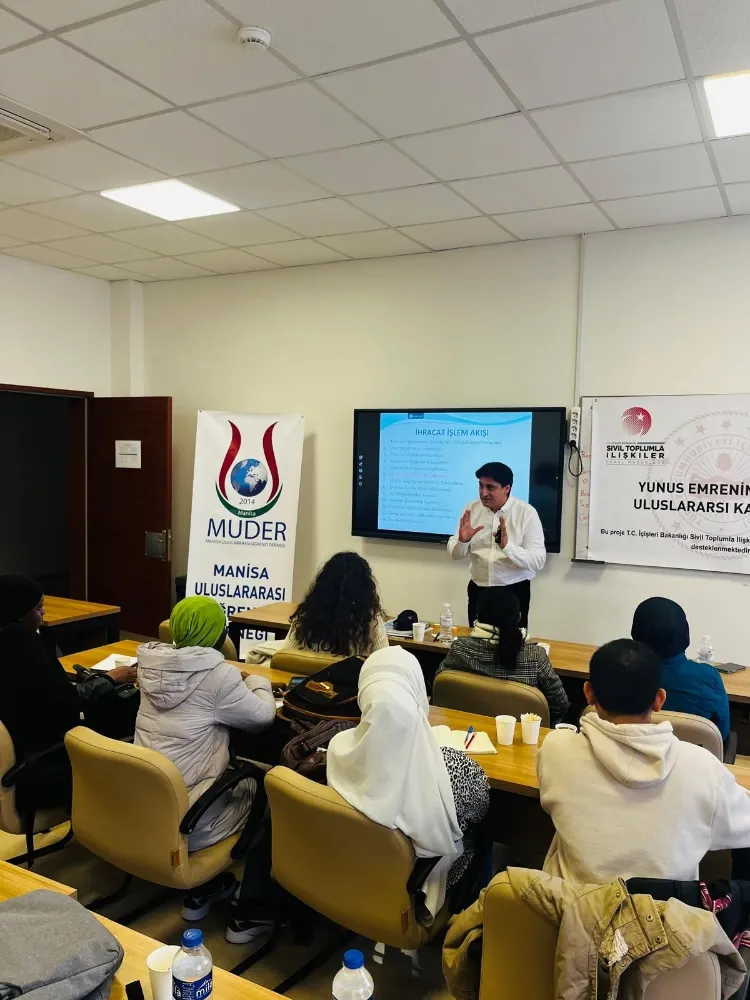 (MHA) Manisa Uluslararası Öğrenci Derneği (MUDER) tarafından yürütülen ve Sivil Toplumla İlişkiler Genel Müdürlüğü’nün desteklediği “Yunusemre’nin İzinde Uluslararası Kardeşlik” projesi kapsamında düzenlenen seminerler devam ediyor. Projenin önemli ayaklarından biri olan dış ticaret eğitimleri çerçevesinde, ikinci seminer Manisa Celal Bayar Üniversitesi (MCBÜ) öğretim üyesi Doç. Dr. İsmail Metin’in sunumuyla gerçekleştirildi.