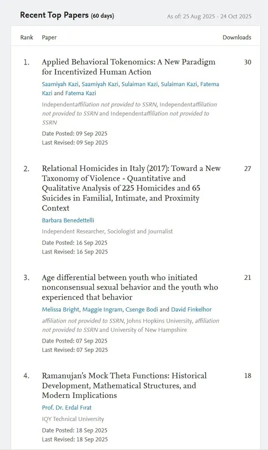 Bilimsel düşüncenin evrensel yankısı, bir kez daha çarpıcı biçimde tezahür etti. Prof. Dr. Erdal Fırat’ın kaleme aldığı “Ramanujan’s Mock Theta Functions: Historical Development, Mathematical Structures, and Modern Implications” başlıklı akademik çalışma, dünyanın en prestijli bilimsel platformlarından SSRN (Social Science Research Network) tarafından yayımlanan son 60 günün en yüksek etki yaratan yayınları arasında 4. sıraya yerleşerek küresel ölçekte olağanüstü bir başarıya imza attı.