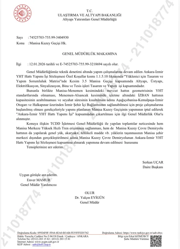 Anahtar Kelimeler: Ankara–İzmir Hattı Manisa' geçecek