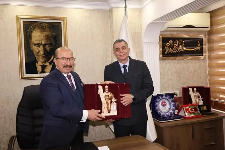 Ziyarette Başkan Bahattin Akyüz, Başkan Hakan Şimşek’e Ahi Evran Veli’nin heykelini takdim etti. Esnaf teşkilatının simgesel değerlerinden biri olan Ahi Evran Veli’nin heykeli, birlik, dayanışma ve ahilik kültürünün yaşatılmasına yönelik anlamlı bir hediye olarak değerlendirildi.