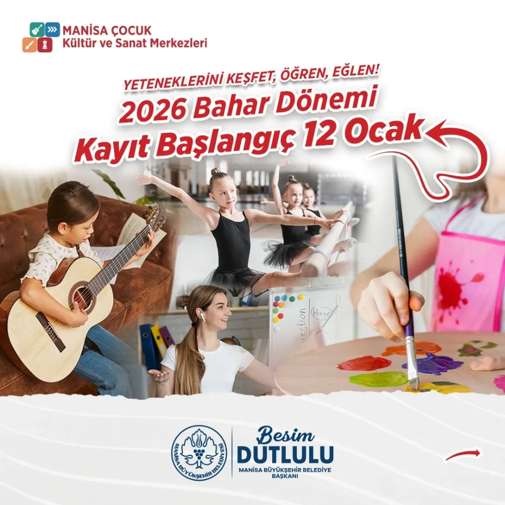 Manisa Büyükşehir Belediyesi, 2026 bahar döneminde de Çocuk Kültür ve Sanat Merkezleri aracılığıyla çocuklara güvenli, eğitici ve eğlenceli bir ortam sunmaya devam edeceklerini vurguluyor.