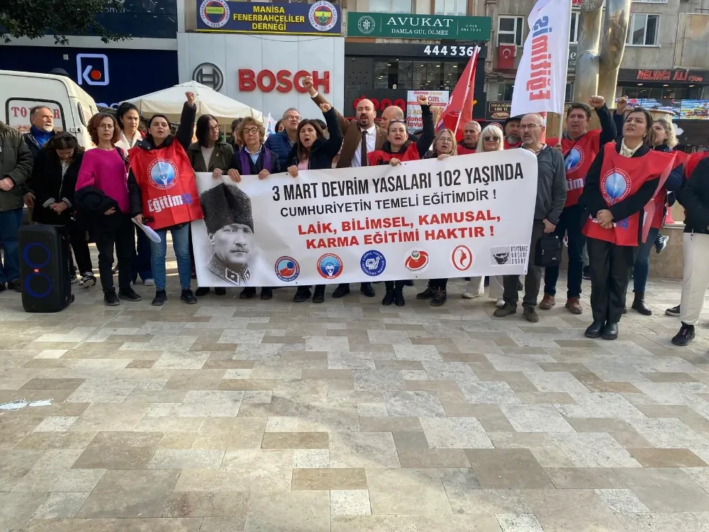 Eğitim-İş Manisa 1 No’lu Şube, 3 Mart Devrim Yasaları’nın 102. yılında laiklik ve kamusal eğitim çağrısı yaparak güncel eğitim politikalarını eleştirdi.