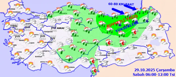 ANKARA (İGFA) - Meteoroloji Genel Müdürlüğü, 29 Ekim Çarşamba gününe ilişkin hava tahmin raporunu yayımladı.