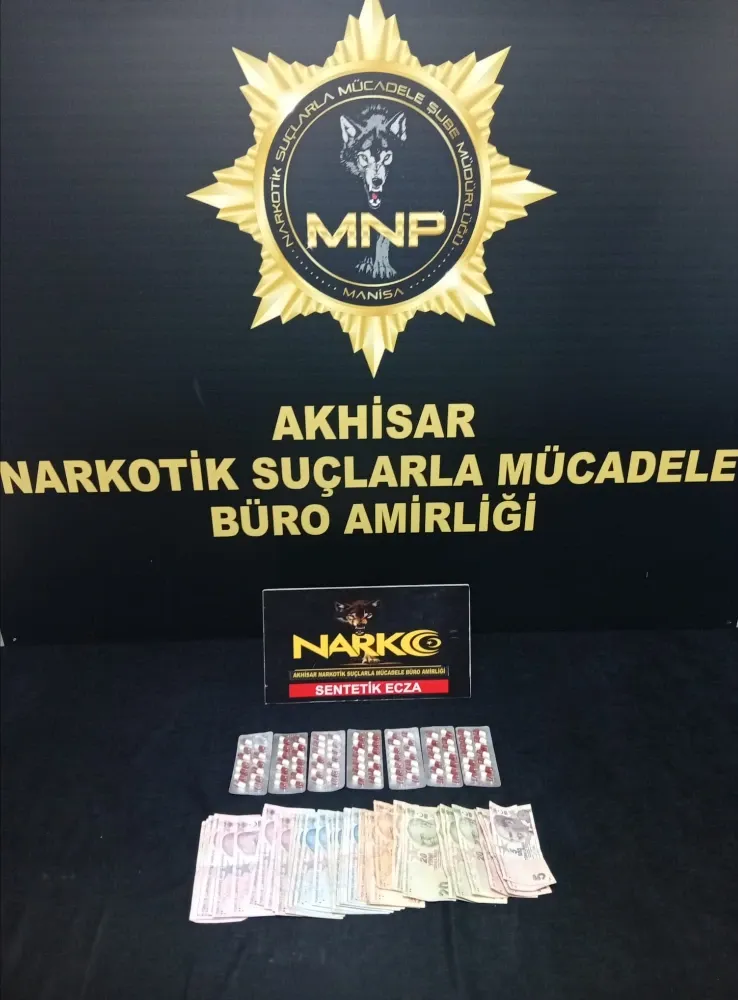 (MHA) Manisa’nın Akhisar ilçesinde, Cumhuriyet Başsavcılığı koordinesinde yürütülen Akhisar uyuşturucu operasyonu kapsamında Narkotik Suçlarla Mücadele Şube Müdürlüğü ve Akhisar Narkotik Suçlarla Mücadele Büro Amirliği ekipleri sahada çalışma başlattı. “Uyuşturucu veya uyarıcı madde imal ve ticareti” yapan şahıslara yönelik sokak çalışmaları sırasında tespiti yapılan bir şüpheli durduruldu. Bu kişinin üzerinde yapılan aramada 108 adet sentetik ecza hap ele geçirildi.