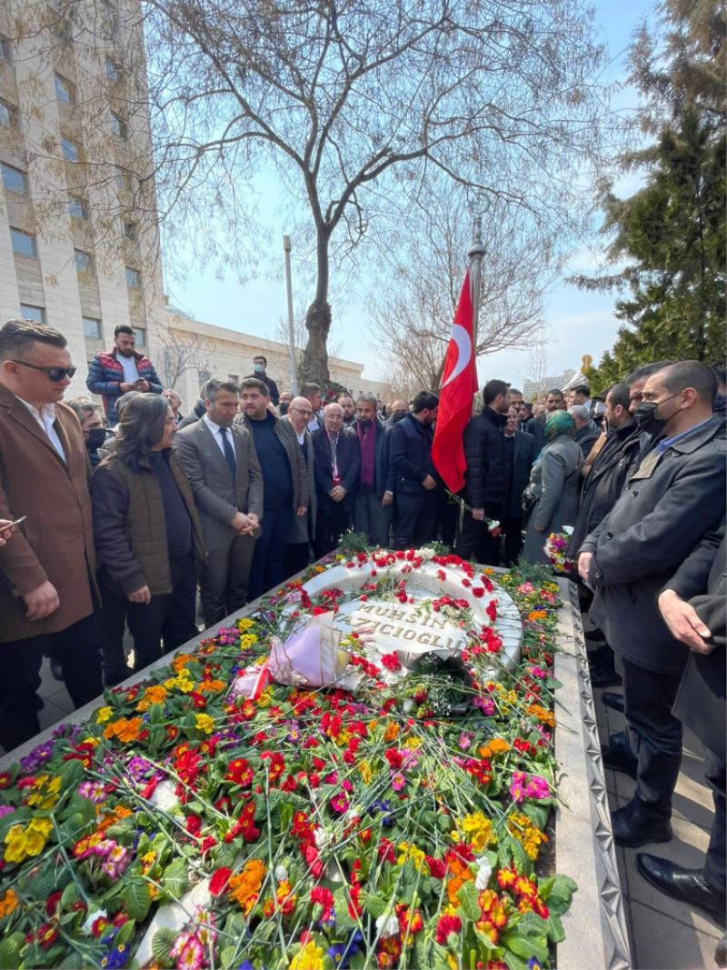 Anma programinda kabrin basinda Muhsin Yazicioglu’nun dava ve yol arkadasi, Ülkücü Hareketin önde gelen isimlerinden Arastirmaci Yazar Hakki Öznur bir konusma yaparak Muhsin Yazicioglu’nun 40 yillik siyasi çizgisini, mücadelesini, davasini anlatmistir. Öznur konusmasinda, Muhsin Yazicioglu’nun yoklugunun derinden hissedildigini ifade ederken Yazicioglu’nun küresel bir tertiple sehit edildigini söylemistir.