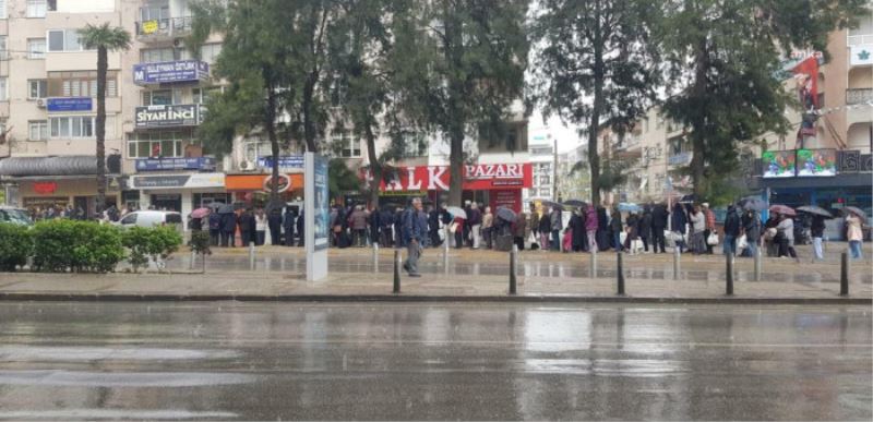 Askıdan ekmek almak için yağmurda kuyruklarca beklediler