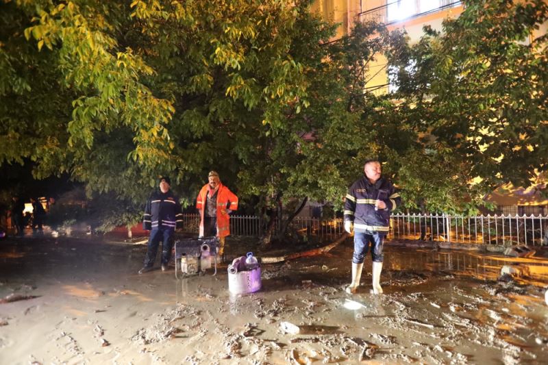 Meteorolojik veriler yağışın yarında devam edeceğini gösteriyor. 25 araç ve 77 personelimiz ihbar gelen noktalarda çalışmaya devam ediyor. Tüm kurumlarımız görevinin başında. Gelen ihbarlara müdahale etmeye devam ediyorlar. Vatandaşlarımızdan bu gece su baskını dolayısıyla evinde kalamayacak olanlara barınacakları yerleri arkadaşlarımız hazırladılar. Onlarla irtibat halindeyiz, kimseyi sokakta bırakmayacağız. Hasar tespitlerine de acilen başlıyoruz. Vatandaşımızın 1 yumurtası da kırılmış olsa onu yerine koyacak bir hasar tespit çalışmasını kapsamlı olarak sürdürüyoruz. İlçe merkezlerimizde durum sakin görünüyor. Karamanlı ilçesinin Bademli köyünde de 3 ev ve 6 ahırı su bastığı görünüyor. Vefat eden vatandaşımız bedensel ve zihinsel engelli.”