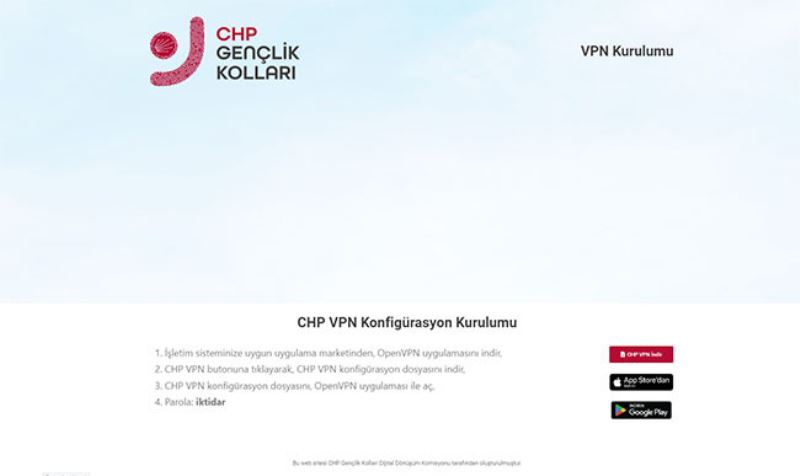 CHP Gençlik Kollari Bilisimden Sorumlu Genel Baskan Yardimcisi Dilara Dalbudak, sosyal medya hesabindan uygulamayla ilgili "Yillarca YouTube, Wikipedia gibi platformlardan mahrum biraktilar simdi ise canlari isteyince sosyal medya erisimimizi kesiyorlar. Sansürsüz günlerimize çok az kaldi! Simdilik çözümümüz: chpdijitaldonusum.com/vpn 'de CHP VPN hizmette. Kalici çözüm parolada gizli" paylasimi yapti. Uygulamanin parolasi ise ‘iktidar’ olarak belirlendi.
