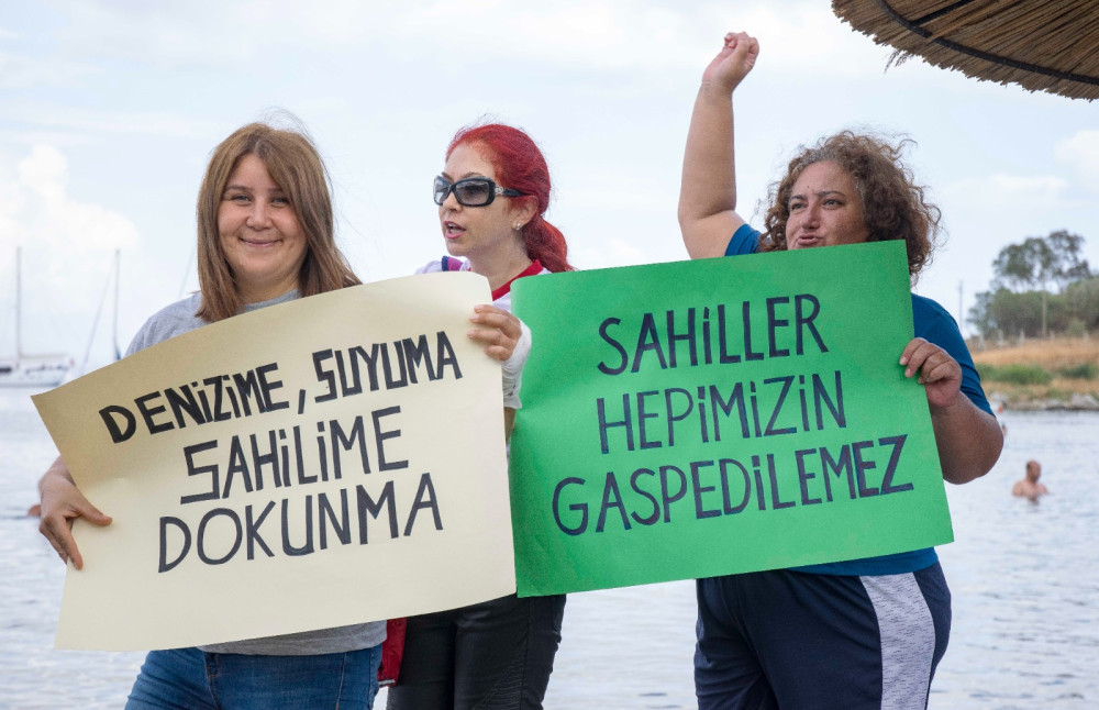 Mugla Çevre Platformu (MUÇEP) Datça Meclisi üyeleri ve çevreciler Taslik Plaji’nda, “Sahiller Halkindir, Halkin Kalacak” eylemi yapti.