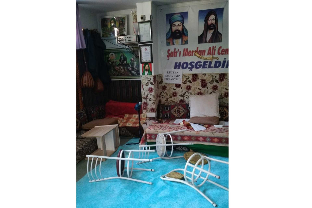 Ankara Mamak’ta, bugün saat 14.30 siralarinda; Sah-i Merdan Cemevi’nde ibadet sirasinda bir kisi elindeki sandalyeleri cemevi dedesinin oldugu yere dogru firlatti. Saldirganin firlattigi sandalyelerden birisi cemevinde oturan bir yurttasin basina geldi. Saldirgan daha sonra cemevinden kosarak uzaklasti. Olay ani güvenlik kamerasi tarafindan kaydedildi.