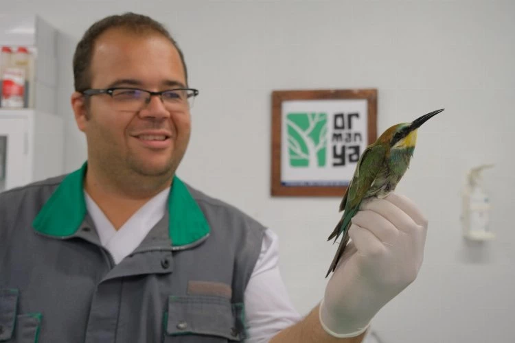 KOCAELİ (İGFA) - Ormanya Yaban Hayatı Kurtarma ve Rehabilitasyon Merkezi’ne yaralı halde getirilen arı kuşuna ilk müdahalesi yapıldı.