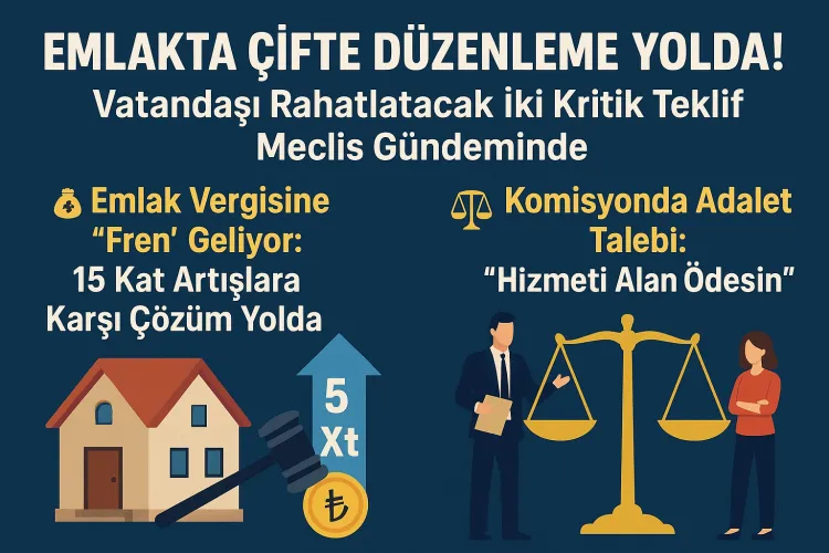 Emlak vergisi düzenlemesinin Meclis’e gelmesi beklenirken, kamuoyunda uzun süredir tartışılan Emlakçı Hizmet Bedeli (komisyonu) uygulaması yeniden gündeme taşındı.