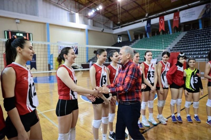 DENİZLİ (İGFA) - Türkiye Voleybol Kadınlar 2. Ligi, 2022-2023 sezonunun 15. haftasında Denizli Büyükşehir Belediyespor ile Kepez Belediyespor karşılaştı. Vali Recep Yazıcıoğlu Spor Salonu’nda oynanan karşılamayı Denizli Büyükşehir Belediye Başkanı Osman Zolan, Gençlik ve Spor İl Müdürü Ömer İlman, Büyükşehir Belediyesi Sosyal Hizmetler Dairesi Başkanı Süleyman Akbulut, Gençlik ve Spor Şube Müdürü Murat İsmail Aydoğmuş, Spor Koordinatörü Faruk Işık ve çok sayıda vatandaş izledi. Başarılı performansları ile göz dolduran Denizli Büyükşehir Belediyespor Voleybol Takımı rakiplerini 3-0 yenerek güzel bir başarıya imza attı. Maç sonu sahaya inen Başkan Osman Zolan, bir süre filenin prensesleri ile sohbet ederek güzel galibiyet için sporcuları tebrik etti. Genç sporcular Başkan Zolan’ın kendilerine büyük bir moral olduğunu belirterek galibiyetlerini kendisine hediye etti.